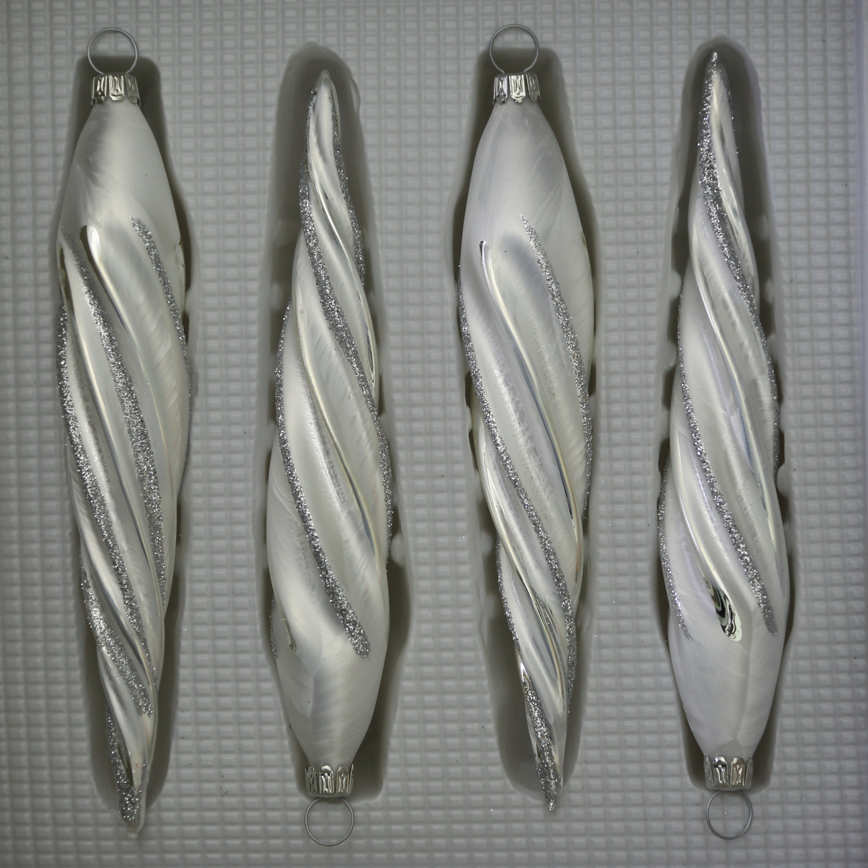 Eiszapfen dünn Eislack weiß mit Dekor, 4 Stück, L 13cm