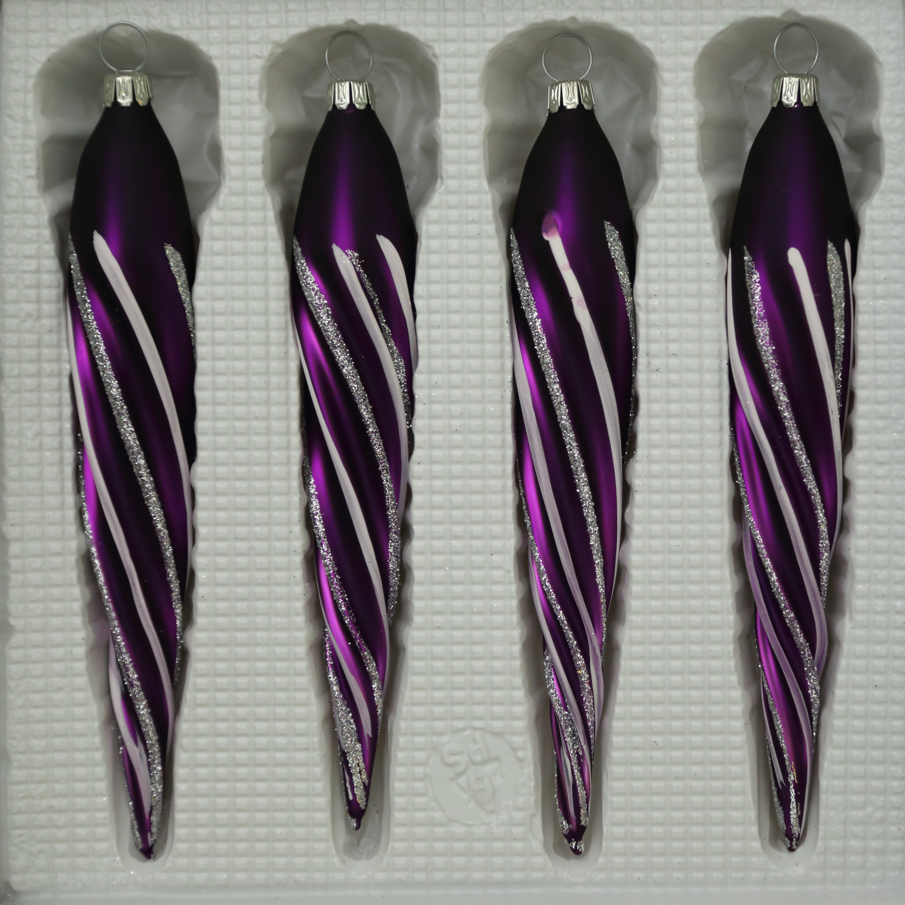 Eiszapfen dünn lila matt mit Dekor, 4 Stück, L 13cm