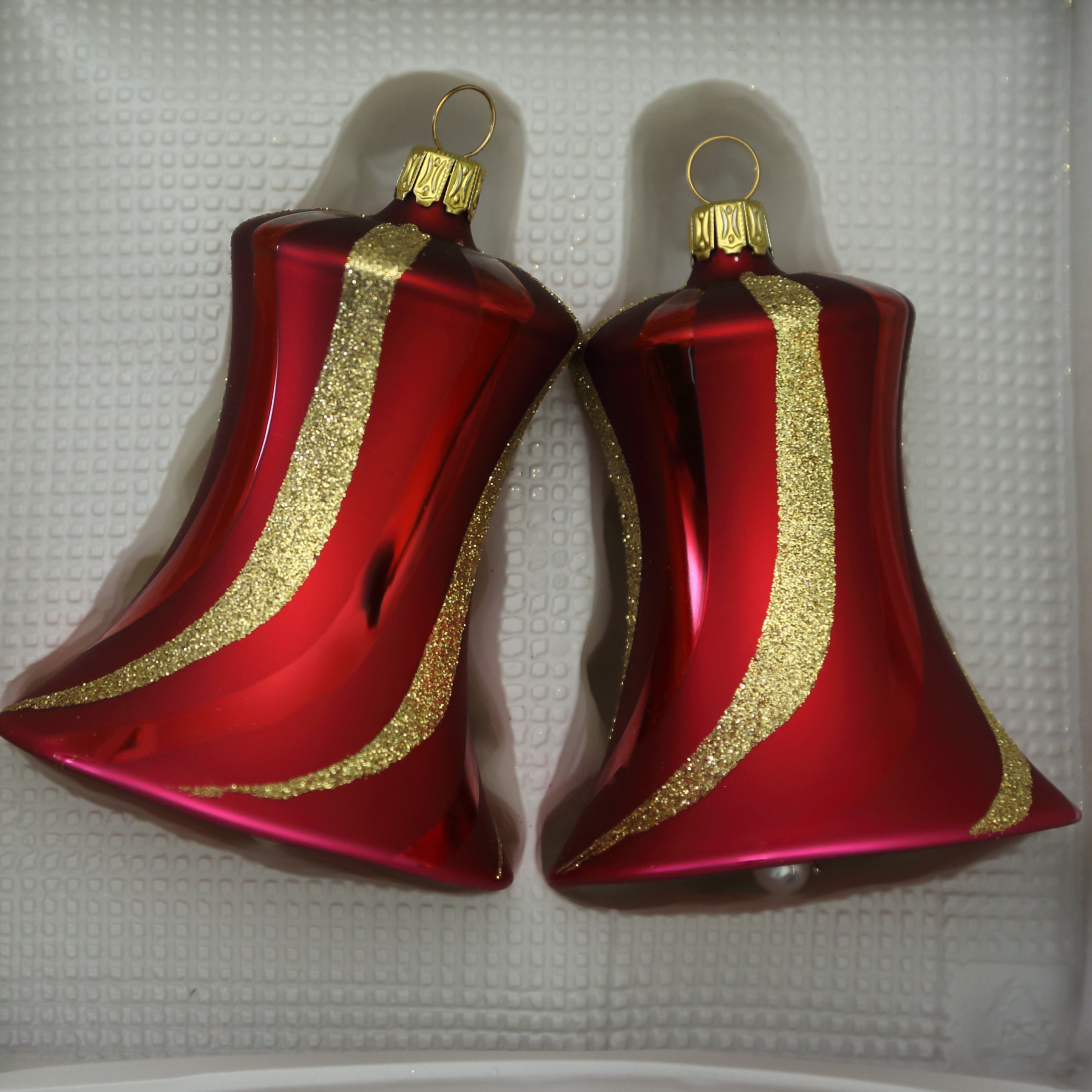 Glocken groß mit Schlägel dunkelrot matt mit Dekor, 2 Stück, d 7cm