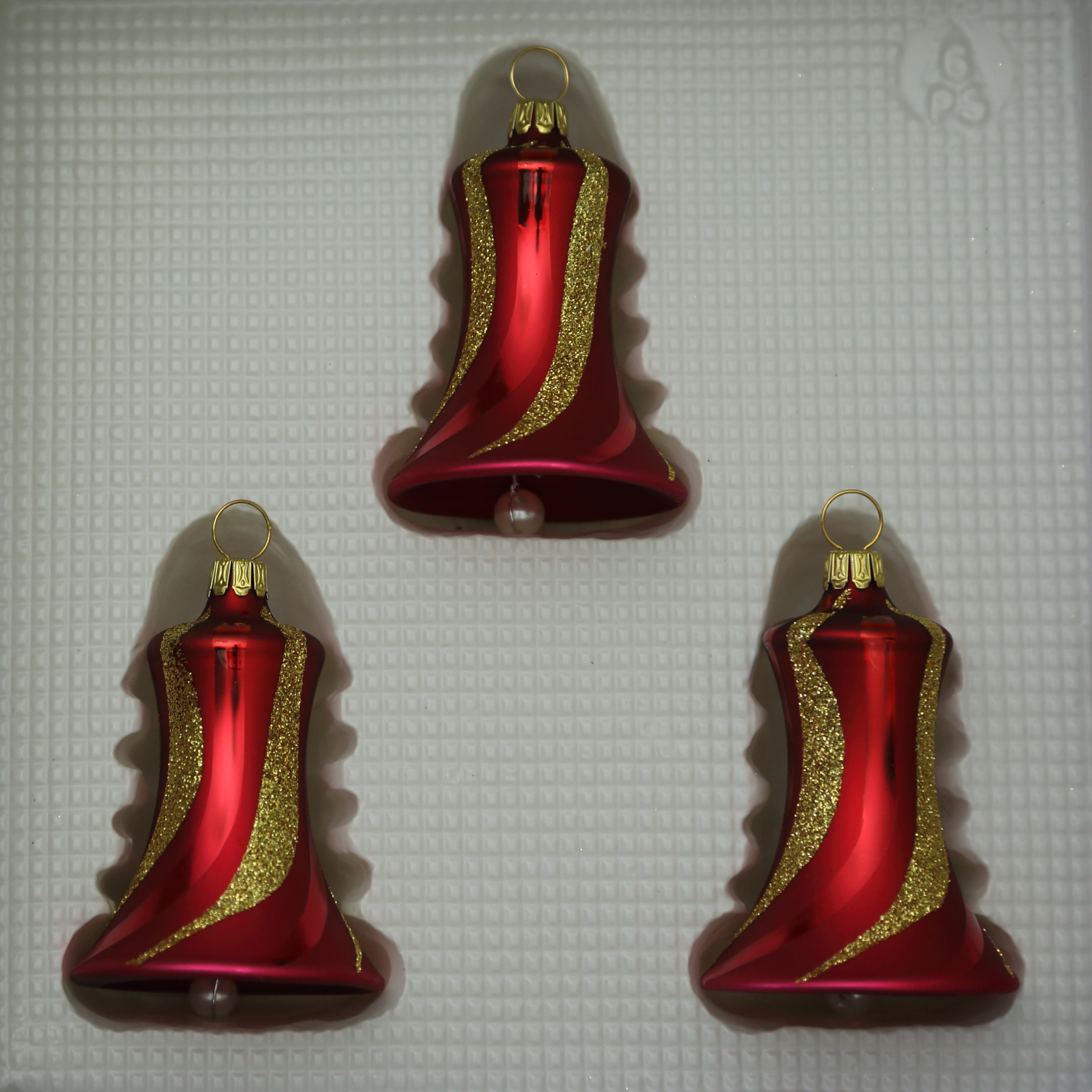 Glocken klein mit Schlägel dunkelrot matt mit Dekor, 3 Stück, d 5cm