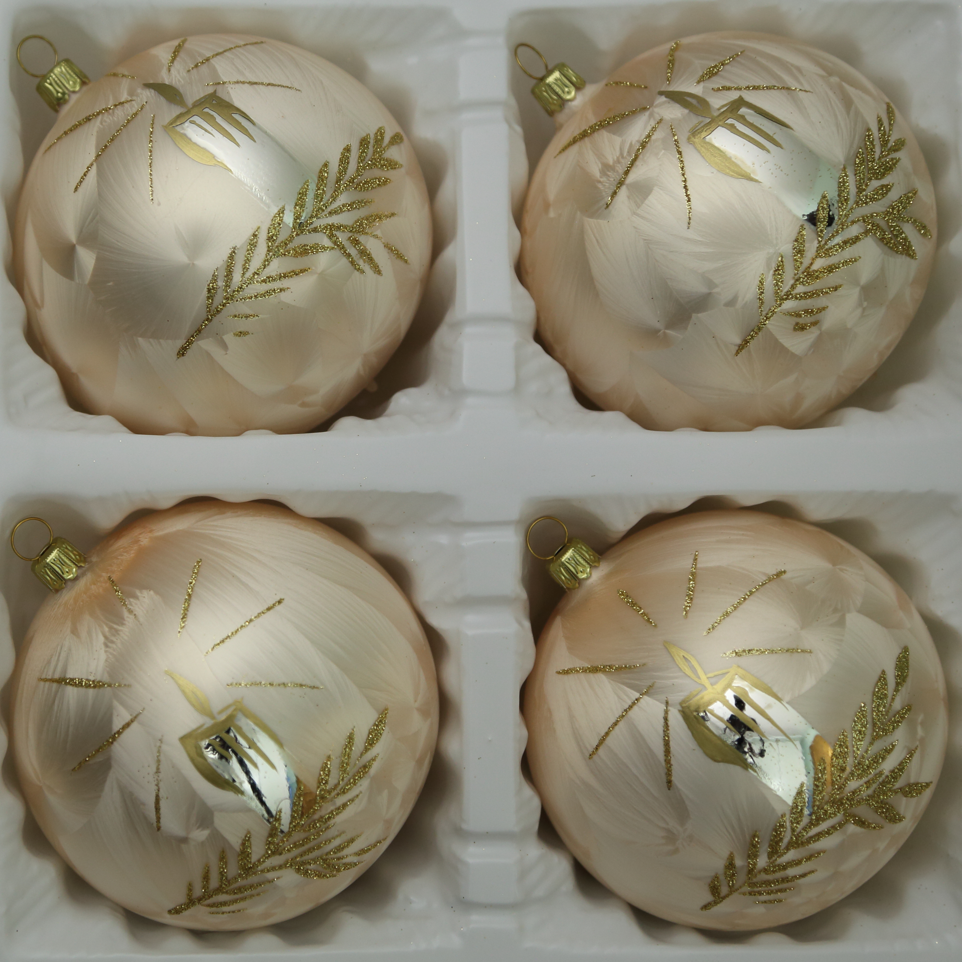 Kugeln Eislack champagner mit Kerzendekor, 4 Stück, d 10cm