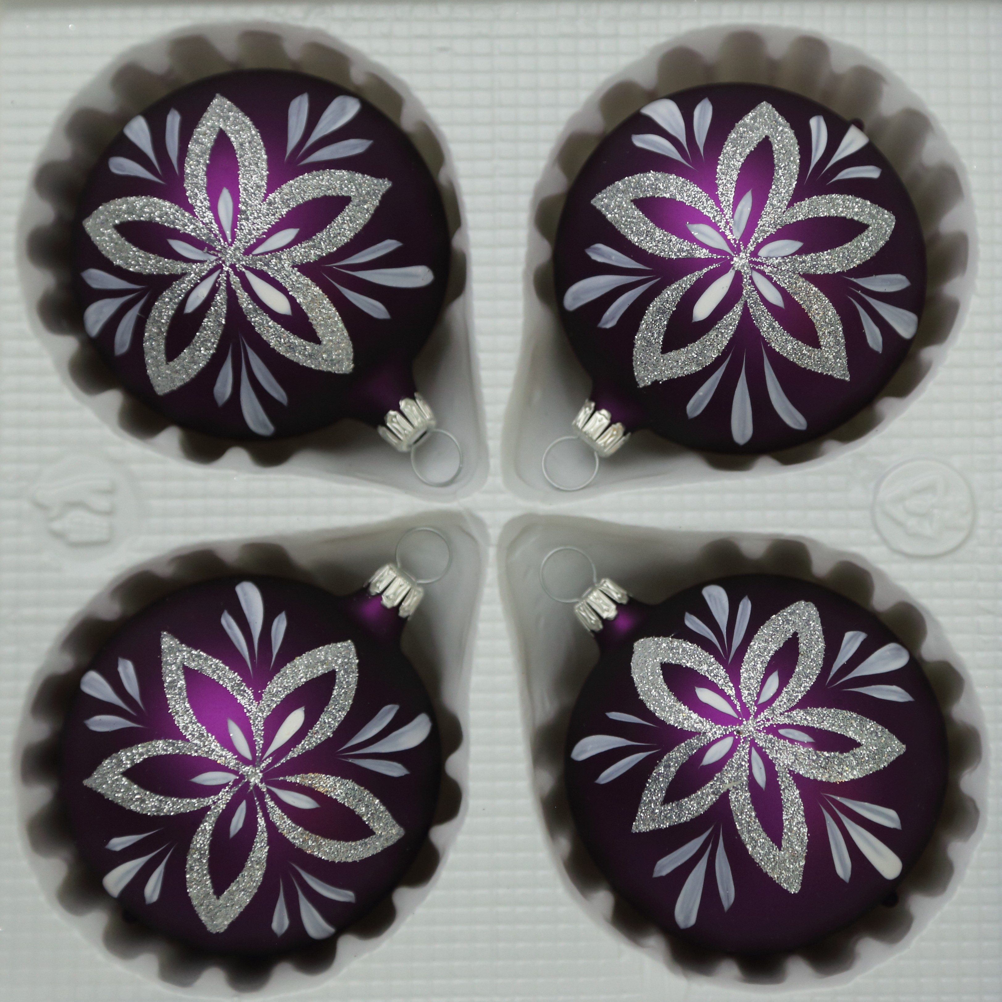 4 Stück, d 7cm, Christbaumschmuck, Weihnachtsbaumschmuck aus Glas