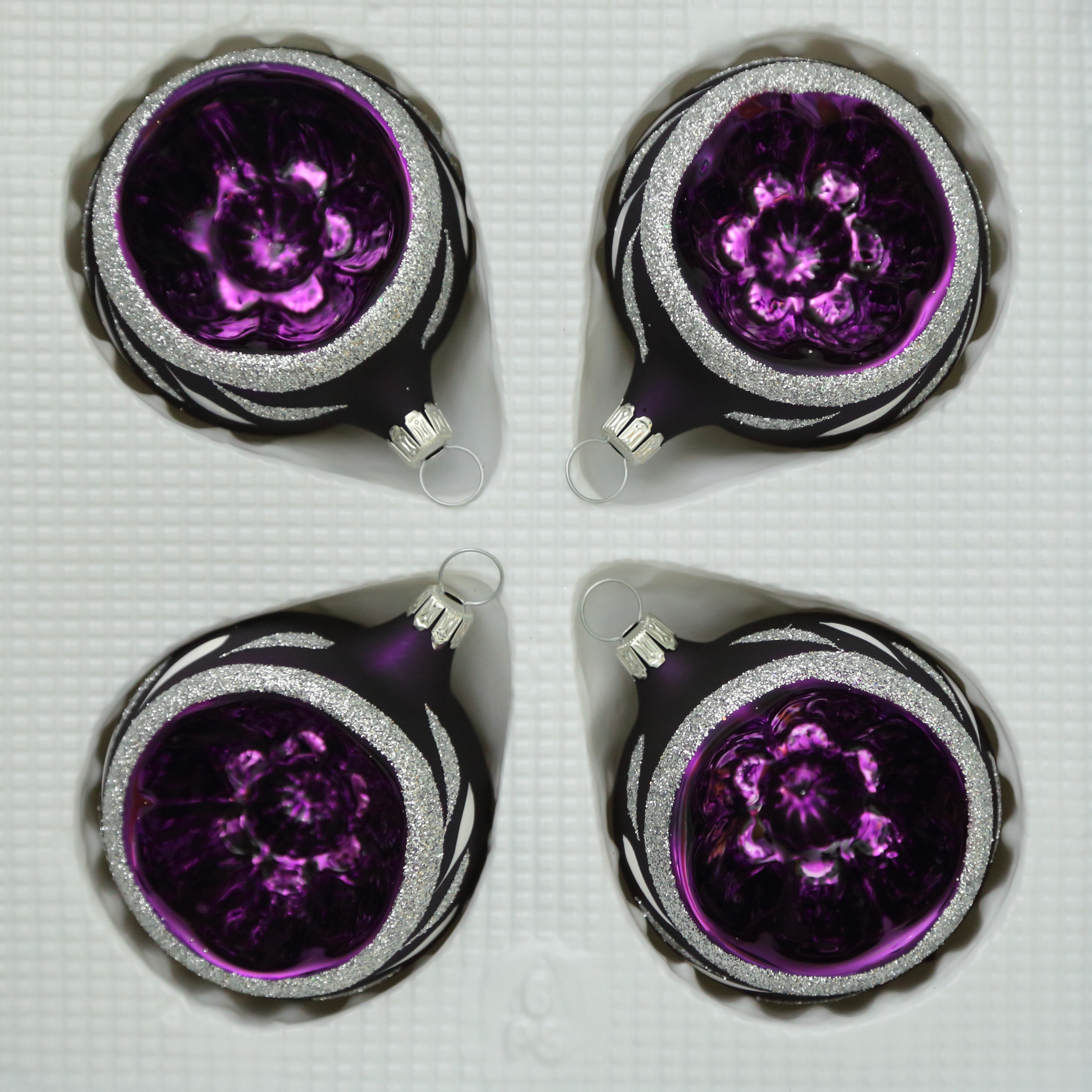 Kugeln mit Einstich lila matt mit Dekor, 4 Stück Reflexe, d 6cm
