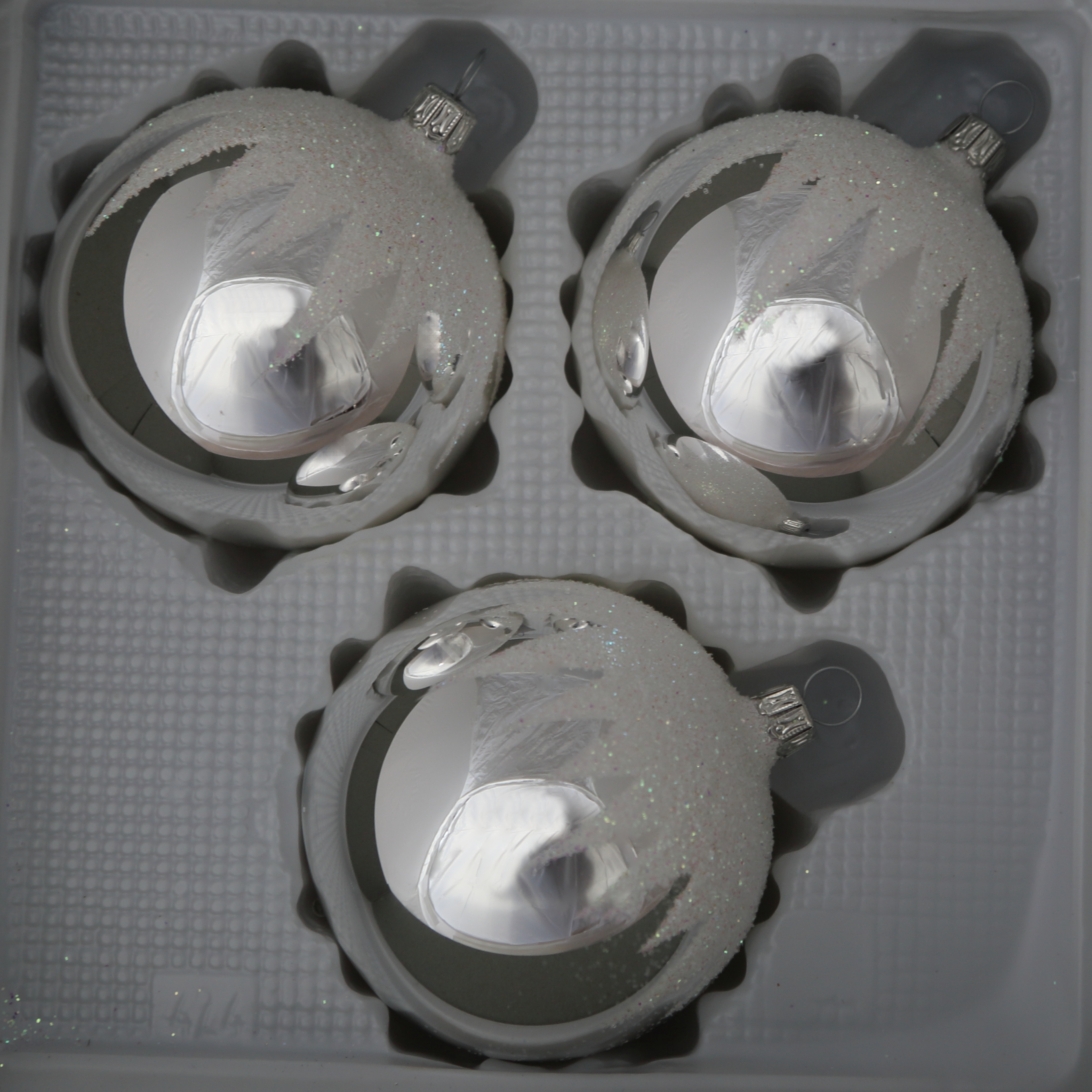 Kugeln silber mit Schneedachdekor, 3 Stück, d 8cm