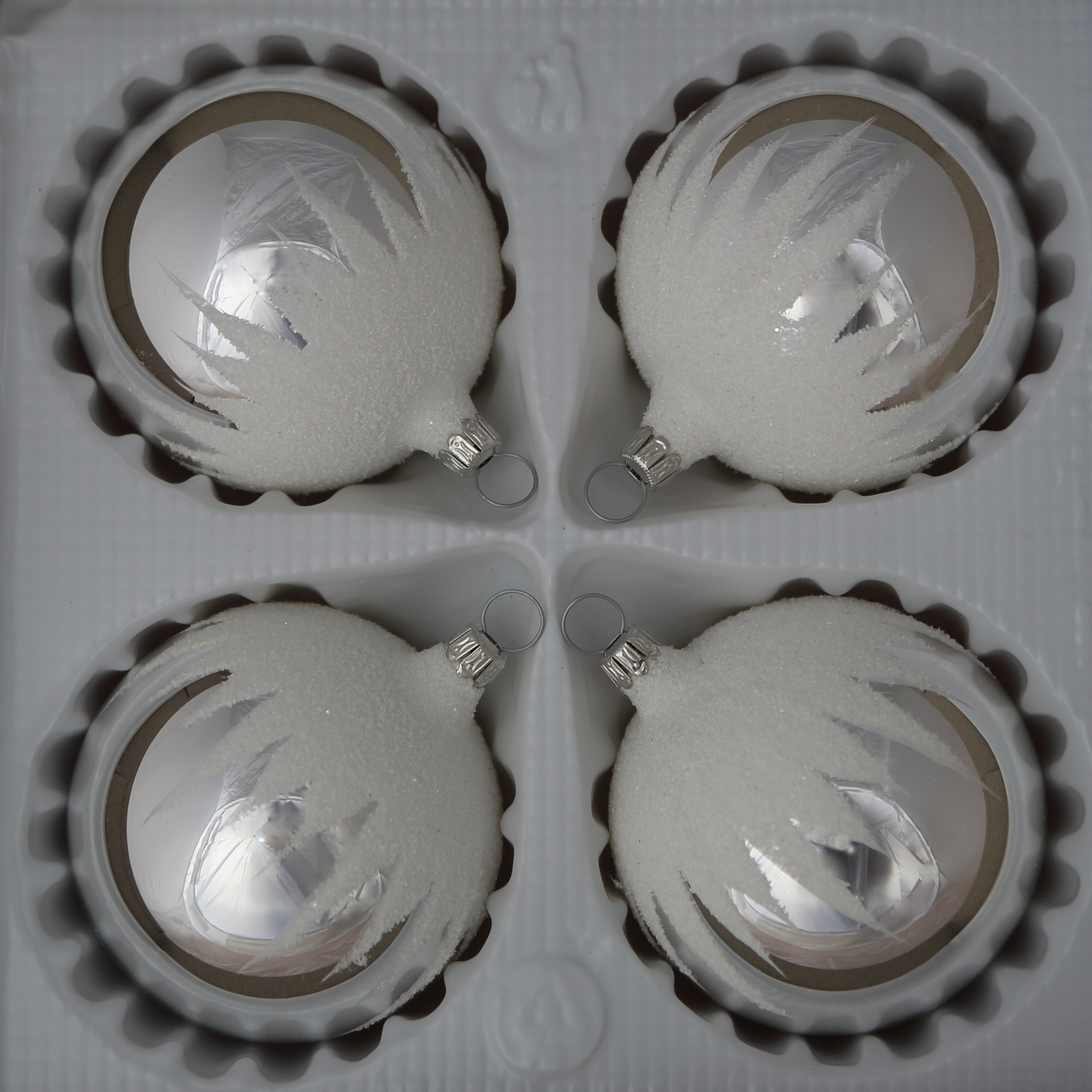 Kugeln silber mit Schneedachdekor, 4 Stück, d 7cm