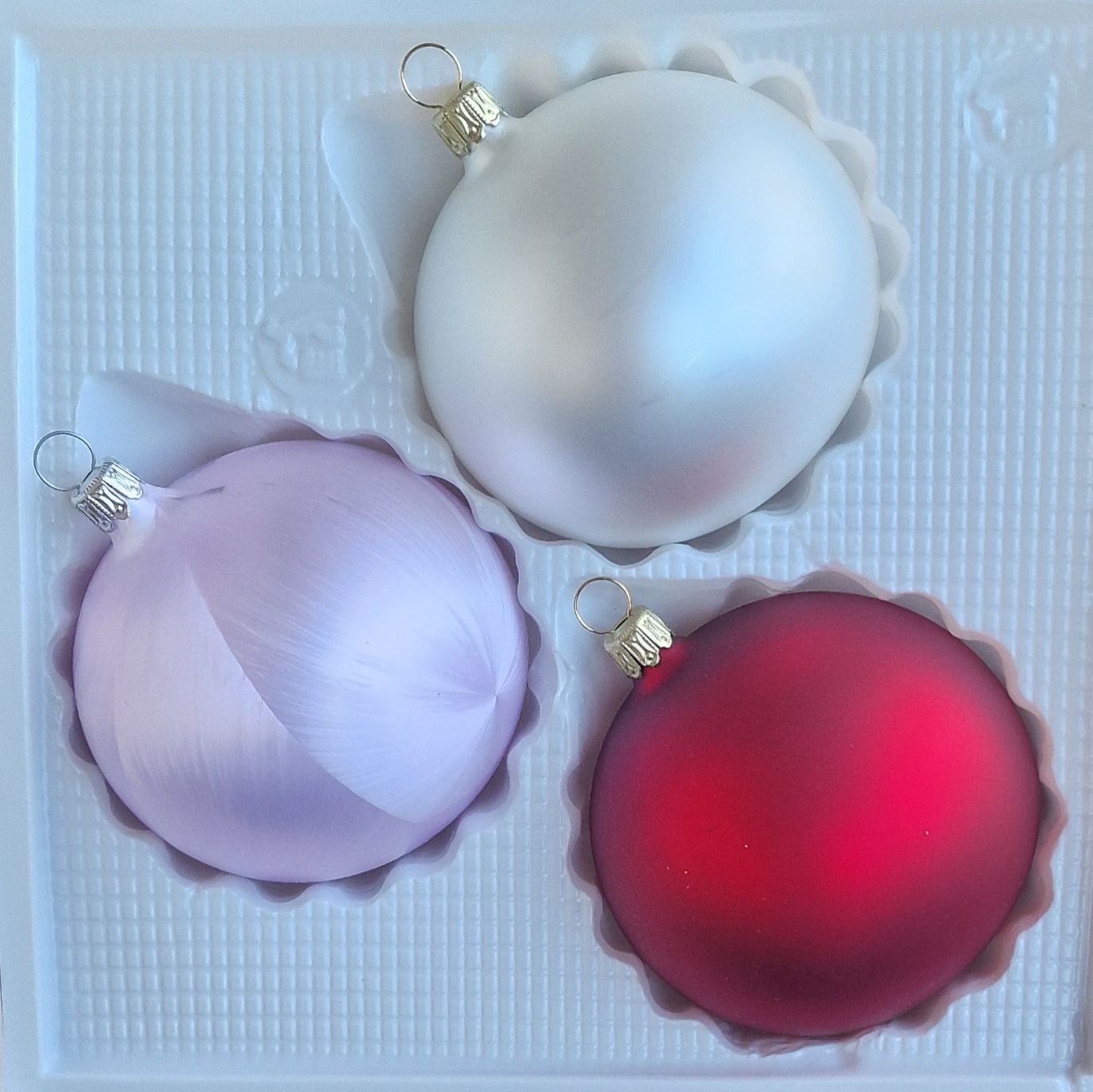 Kugeln uni, 3 verschiedene Farben, d 8cm, 2. Wahl