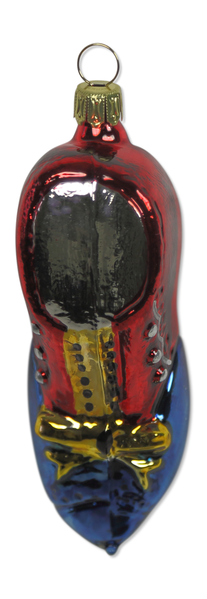 Schuh rot/blau, L 9cm, Christbaumschmuck, Weihnachtsbaumschmuck aus Glas