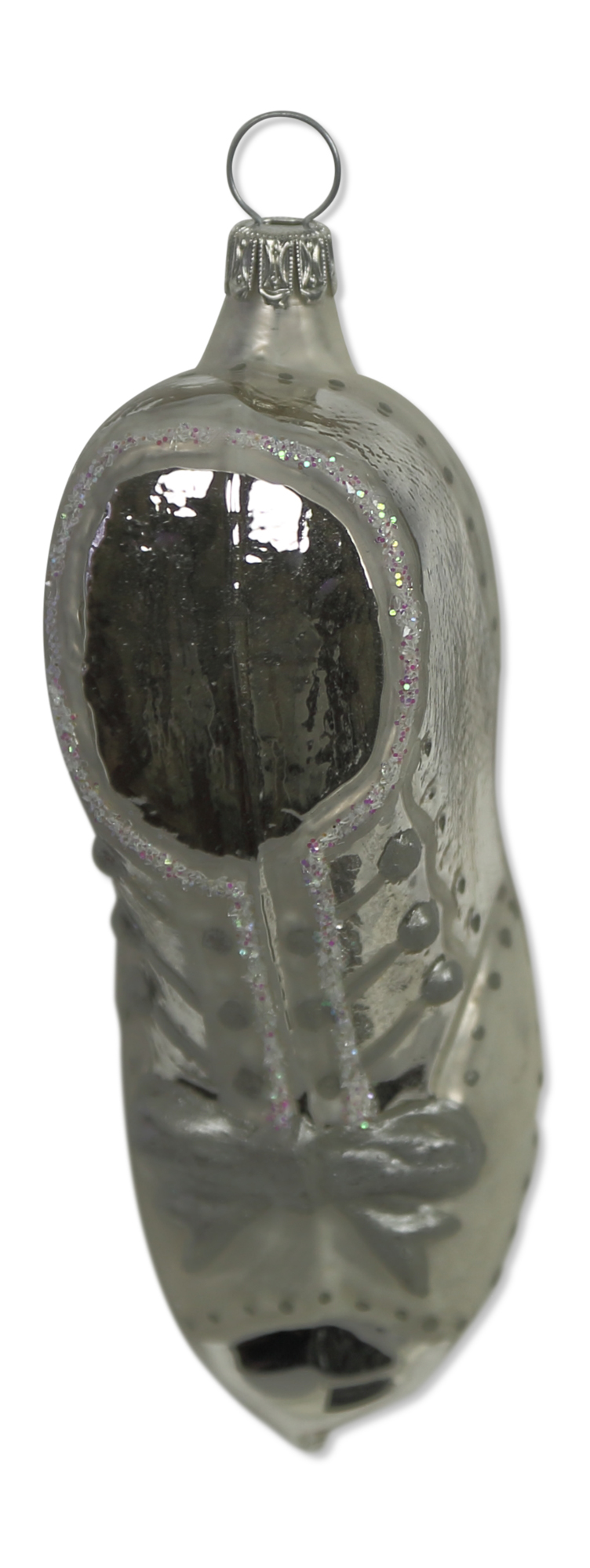 Schuh silber, L 9cm, Christbaumschmuck, Weihnachtsbaumschmuck aus Glas