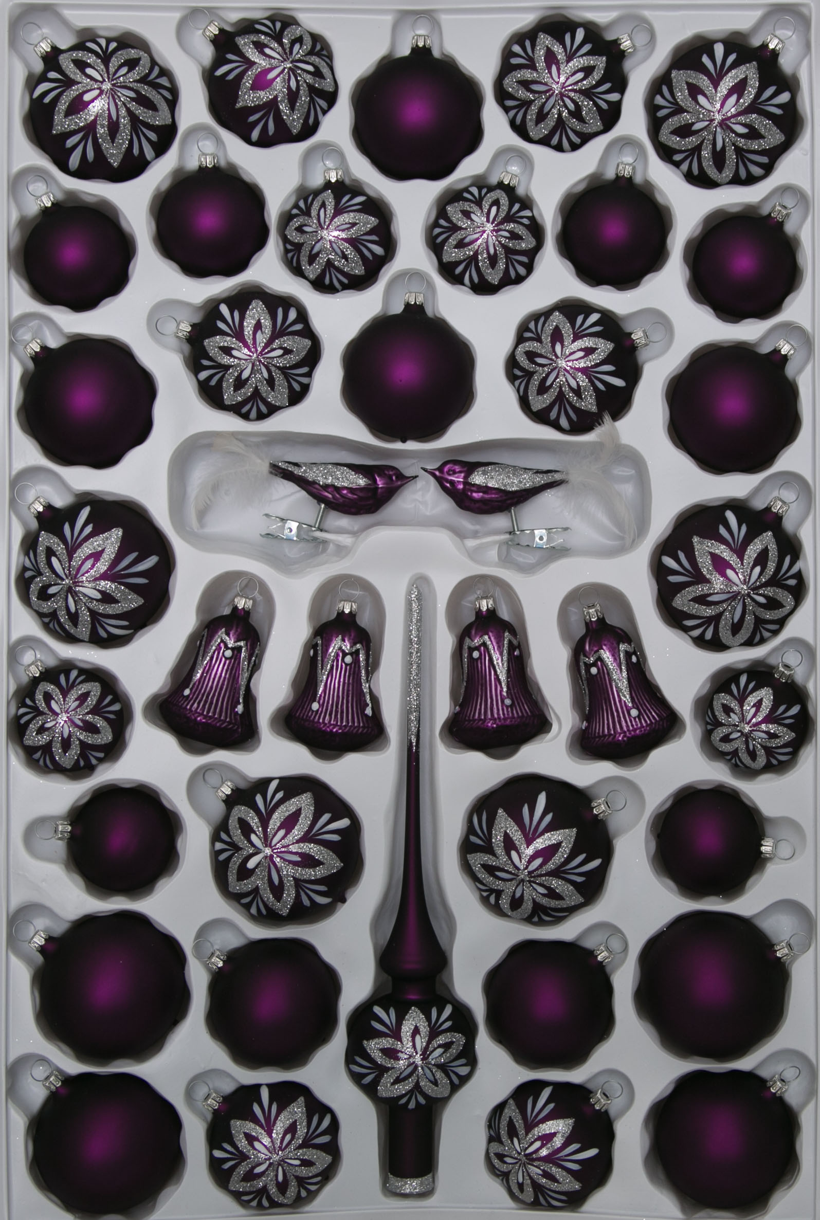 Sortiment lila matt mit Blumendekor, Sortiment 39 Teile mit Formglocken