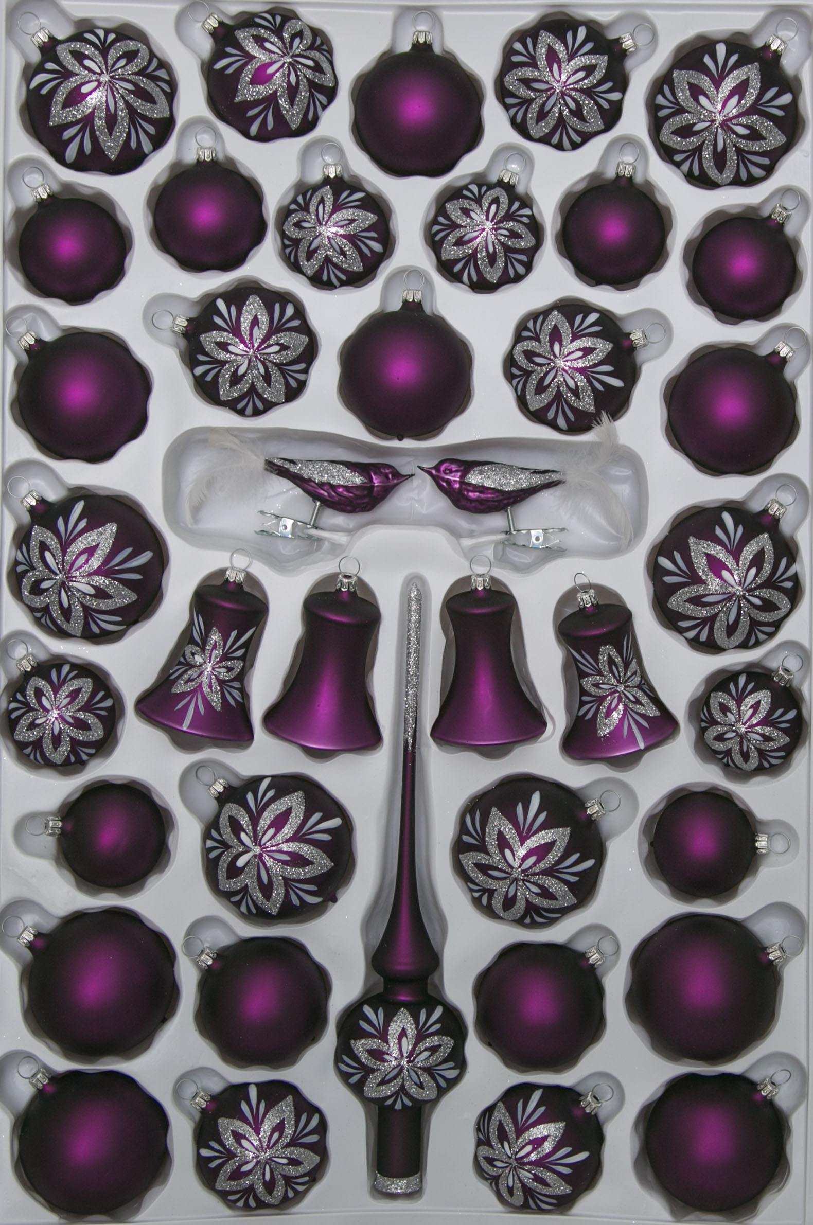 Sortiment lila matt mit Blumendekor, Sortiment 39 Teile mit klingenden Glocken