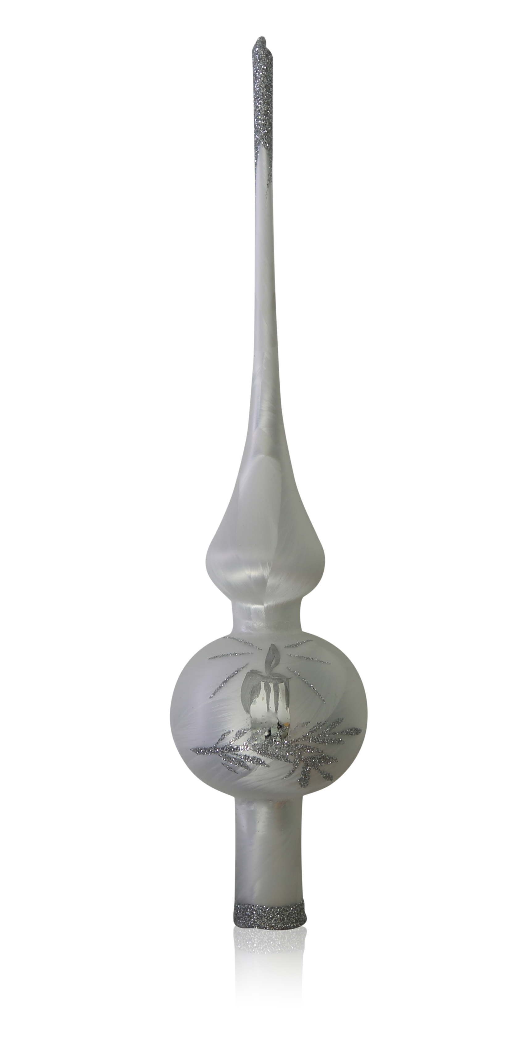Spitze Eislack weiß mit Kerzendekor, L ca. 27cm, d 6cm