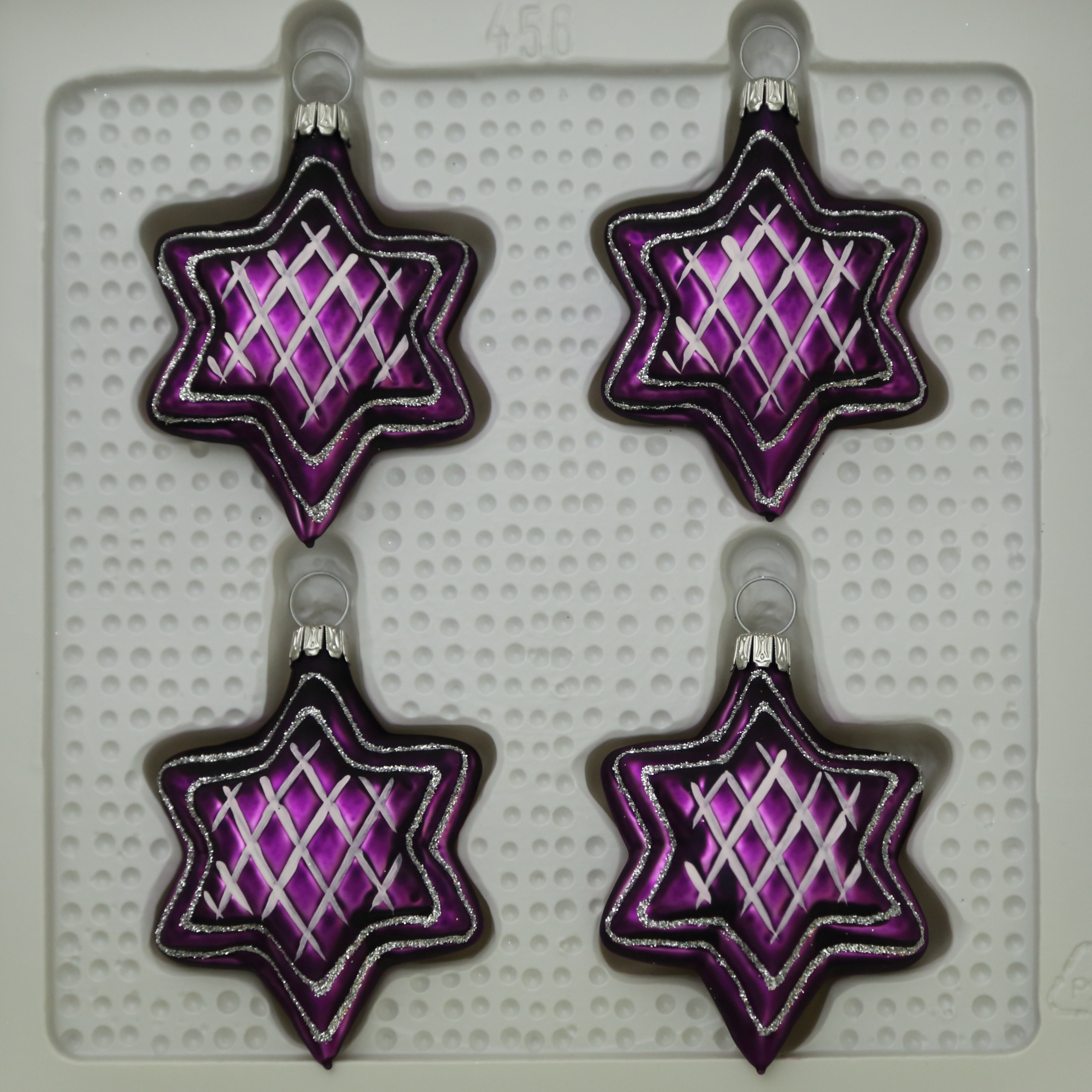 Sterne lila matt mit Dekor, 4 Stück, d 5,5cm