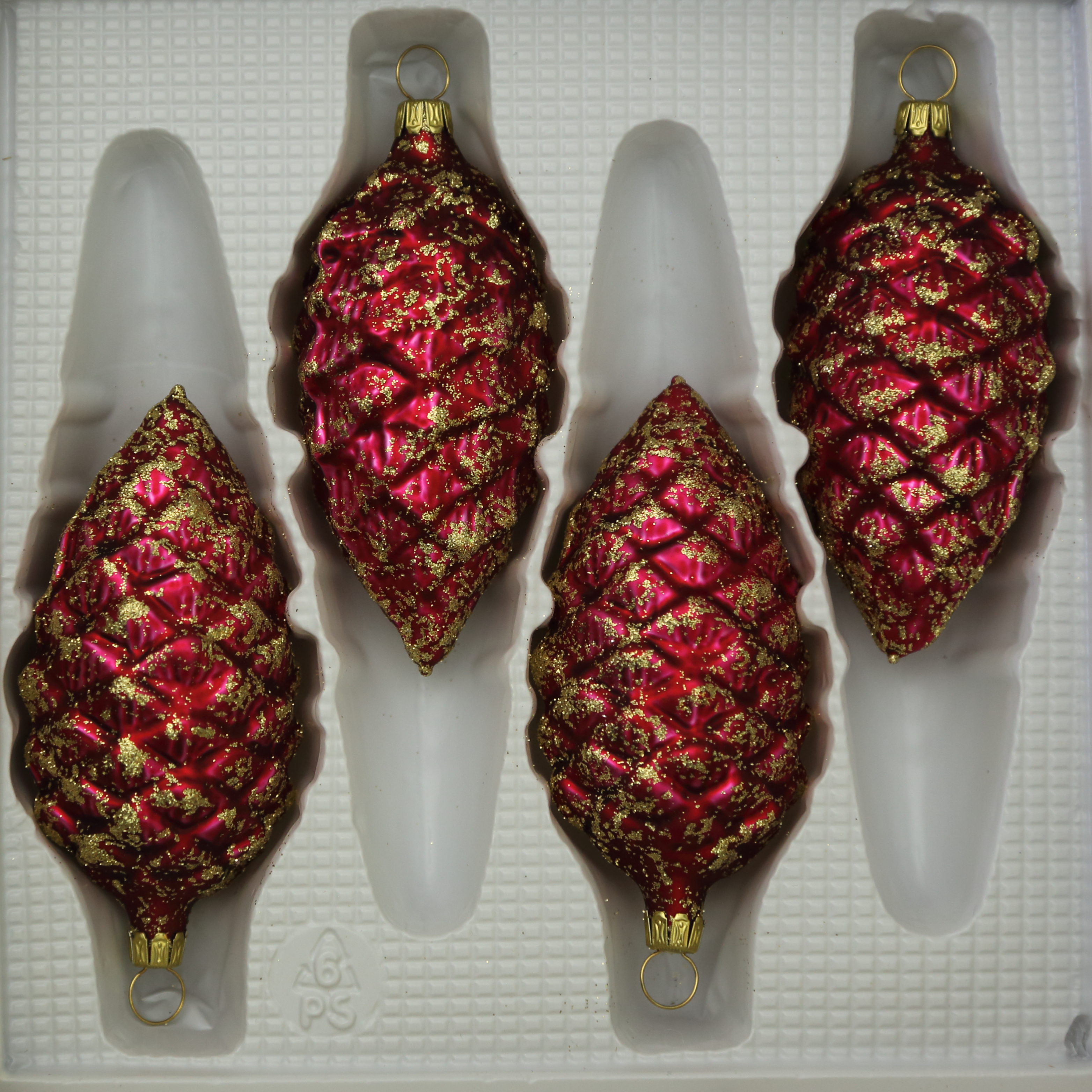4 Stück, L 9cm, Christbaumschmuck, Weihnachtsbaumschmuck aus Glas